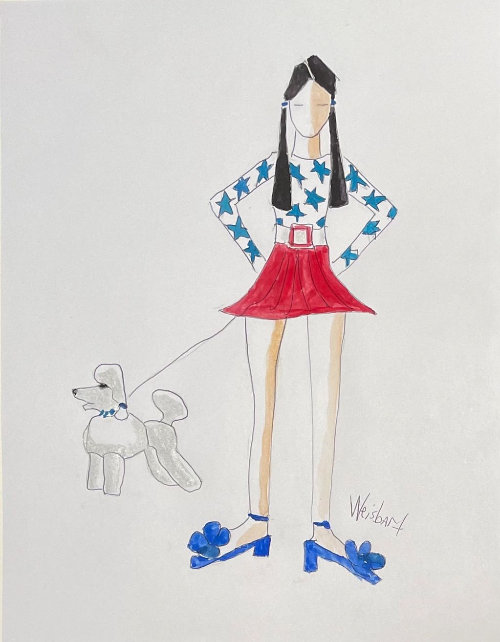 God Bless America, with Poodle, mixed media on paper, 12" x 9"