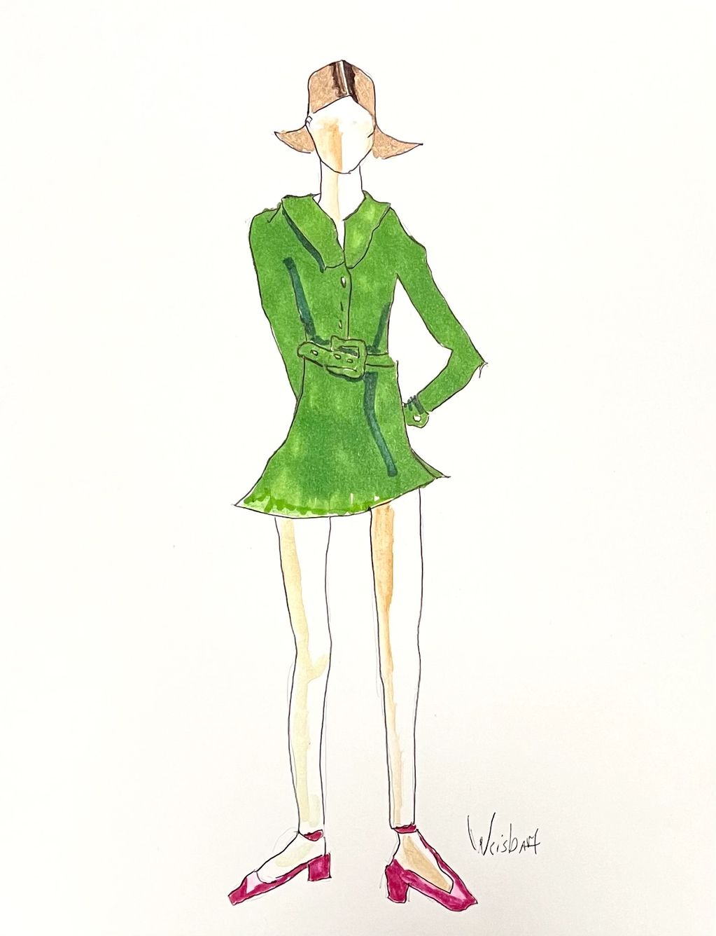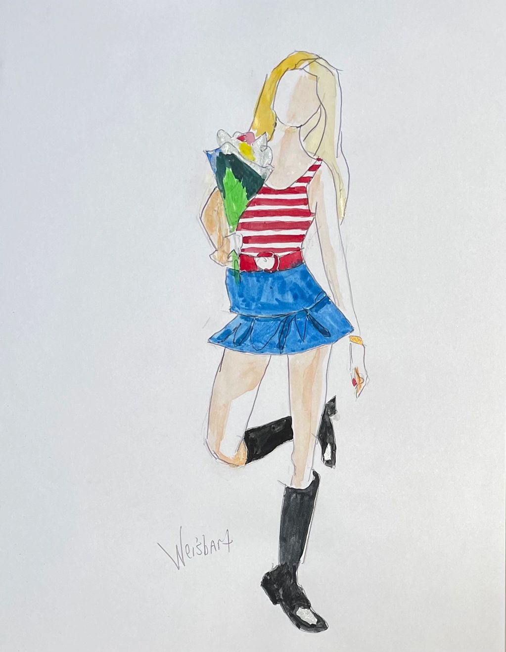 God Bless America, Red Boots, mixed media on paper, 12" x 9"