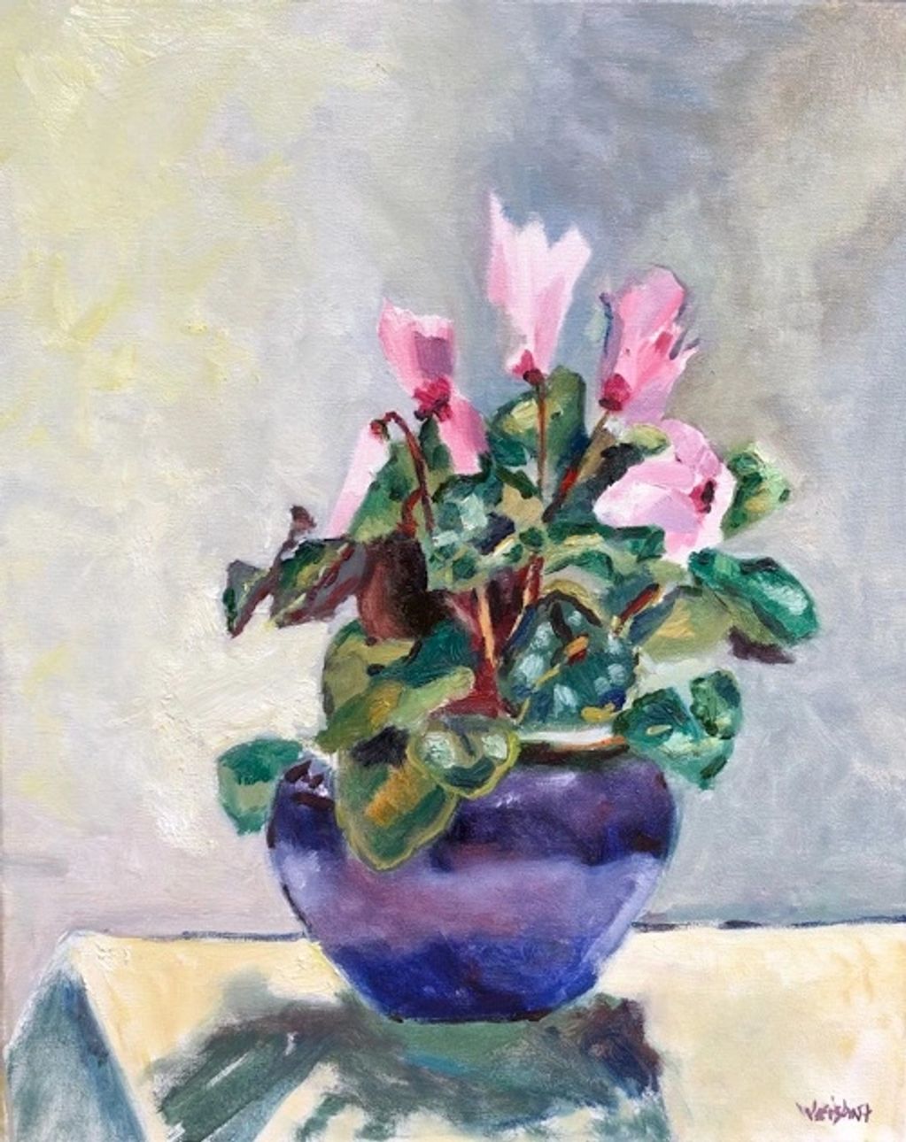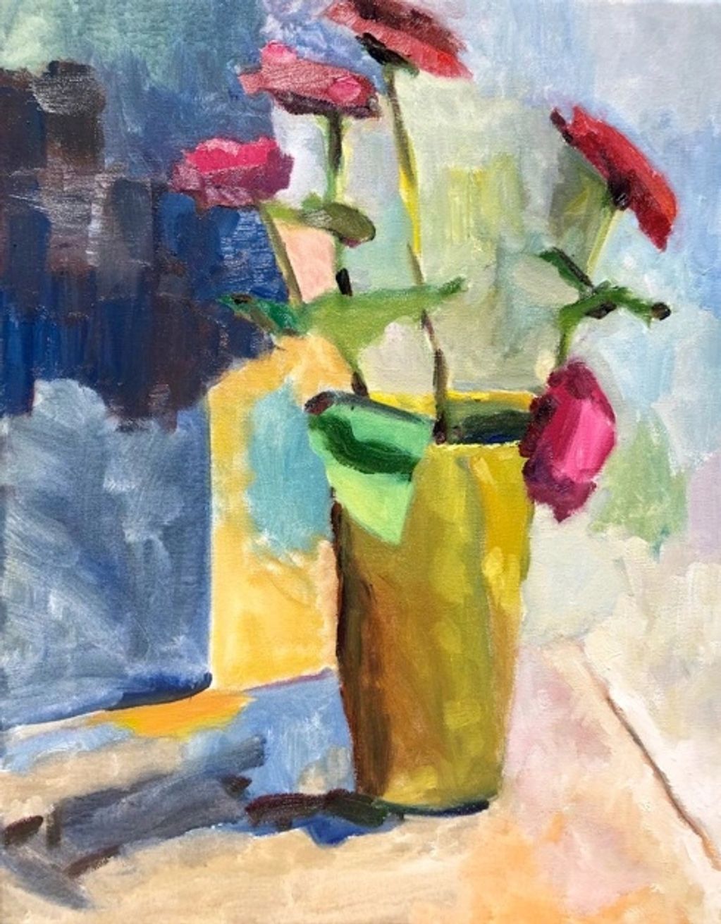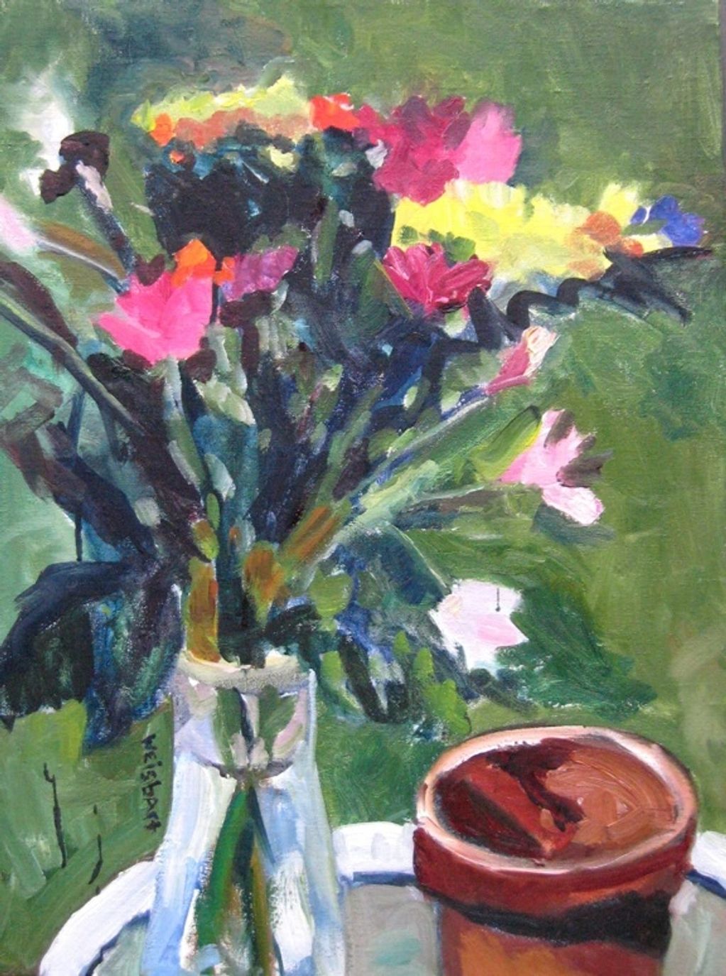 Flowers from Class, oil on wood, 12" x 16"