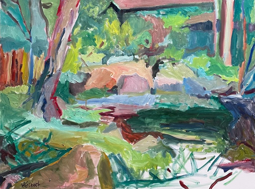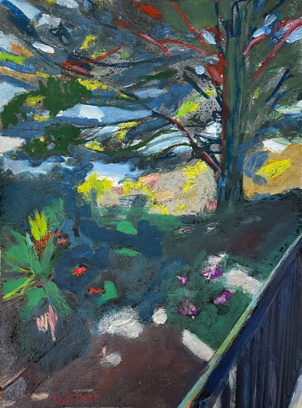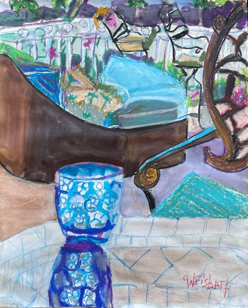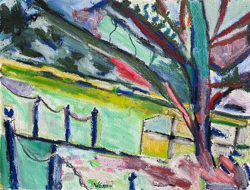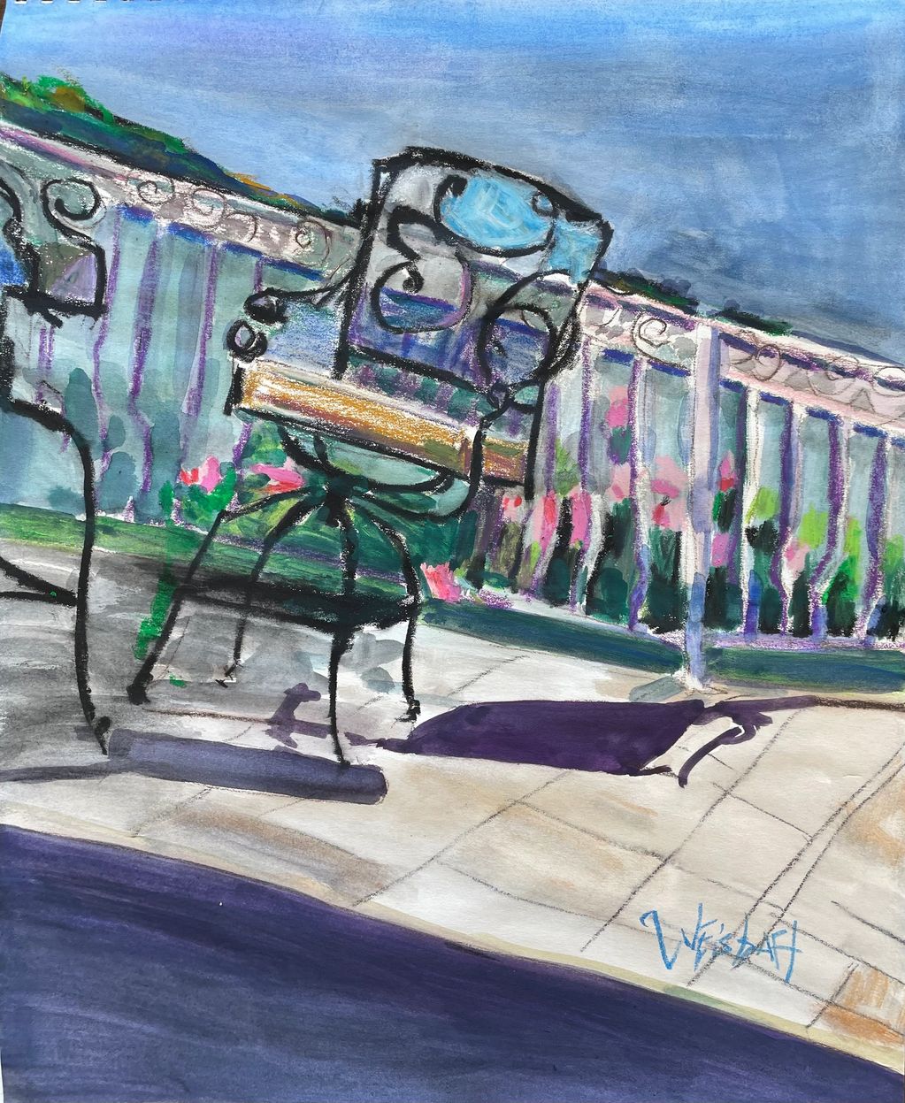 Path to Gardens, mixed media and oil sticks on paper, 11" x 14"