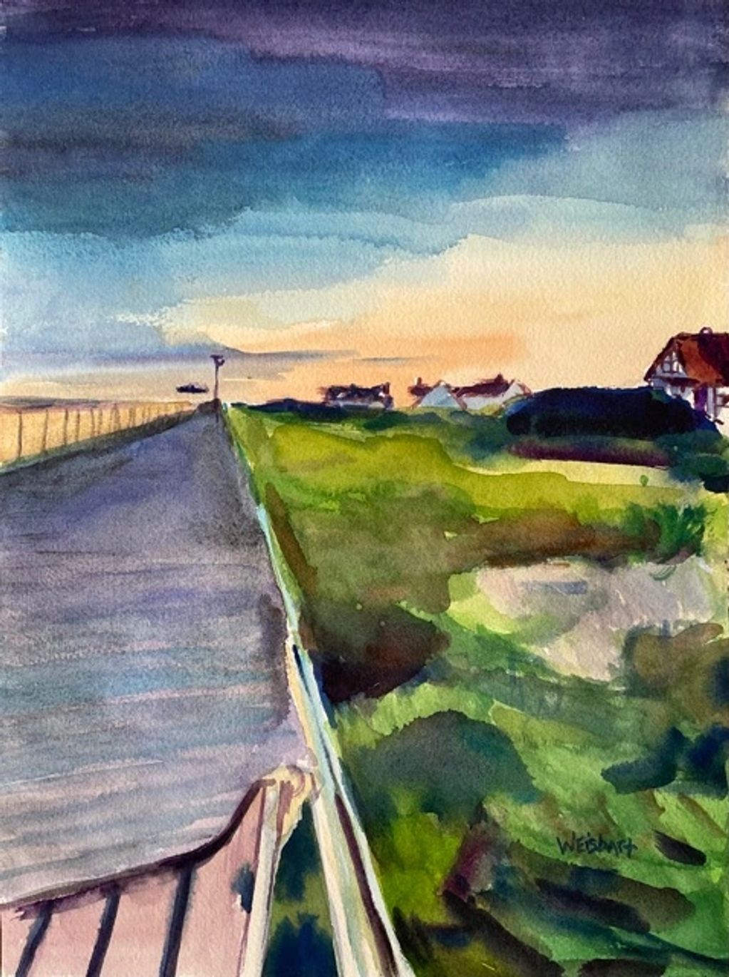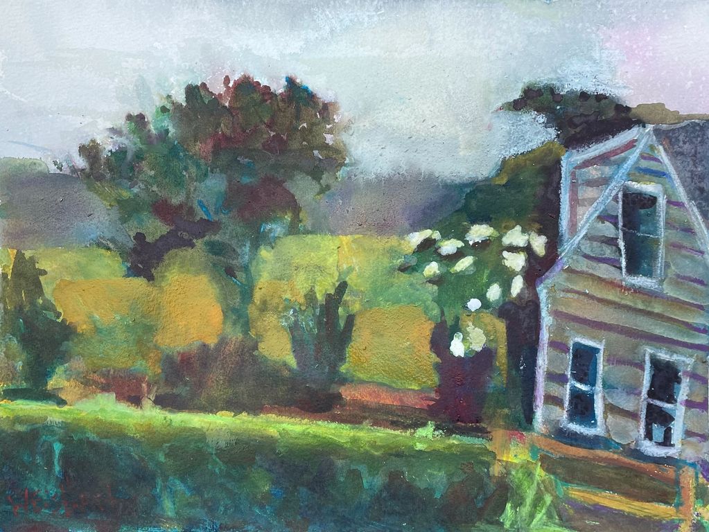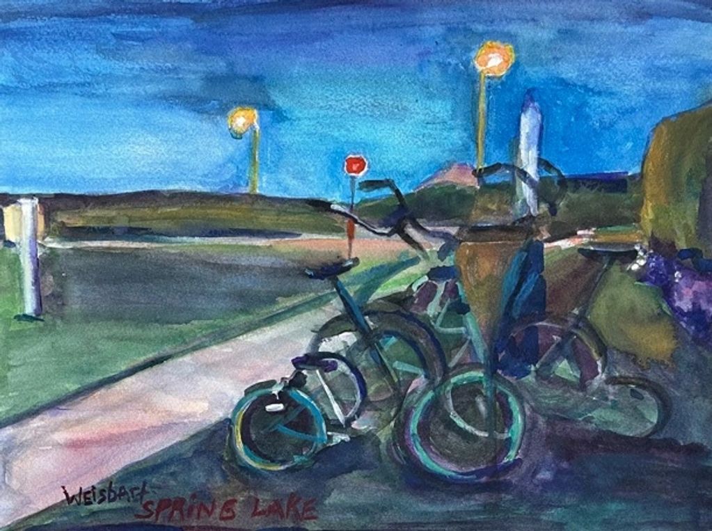 Bicycles as Dusk, mixed media on paper, 9" x 12"