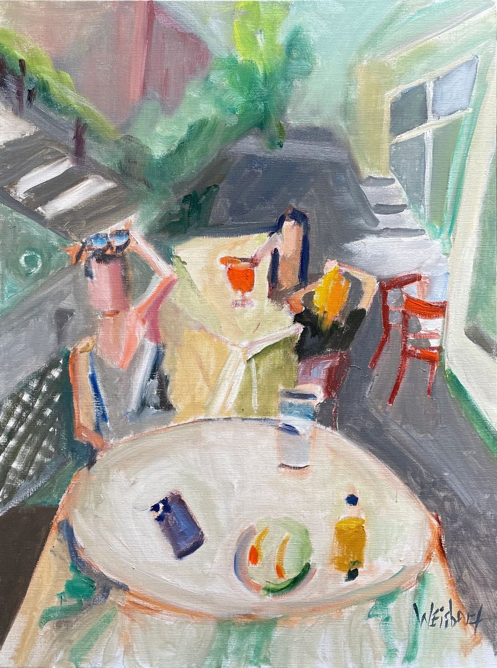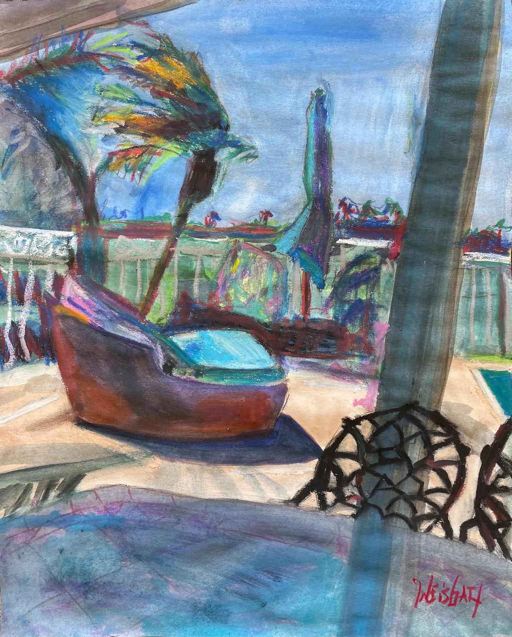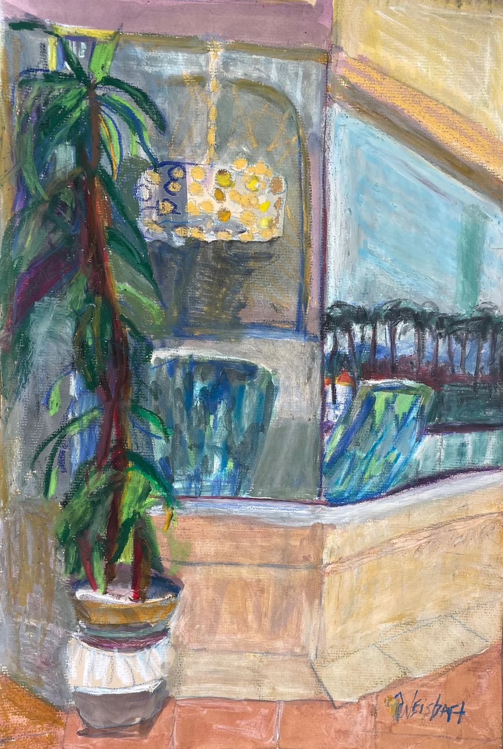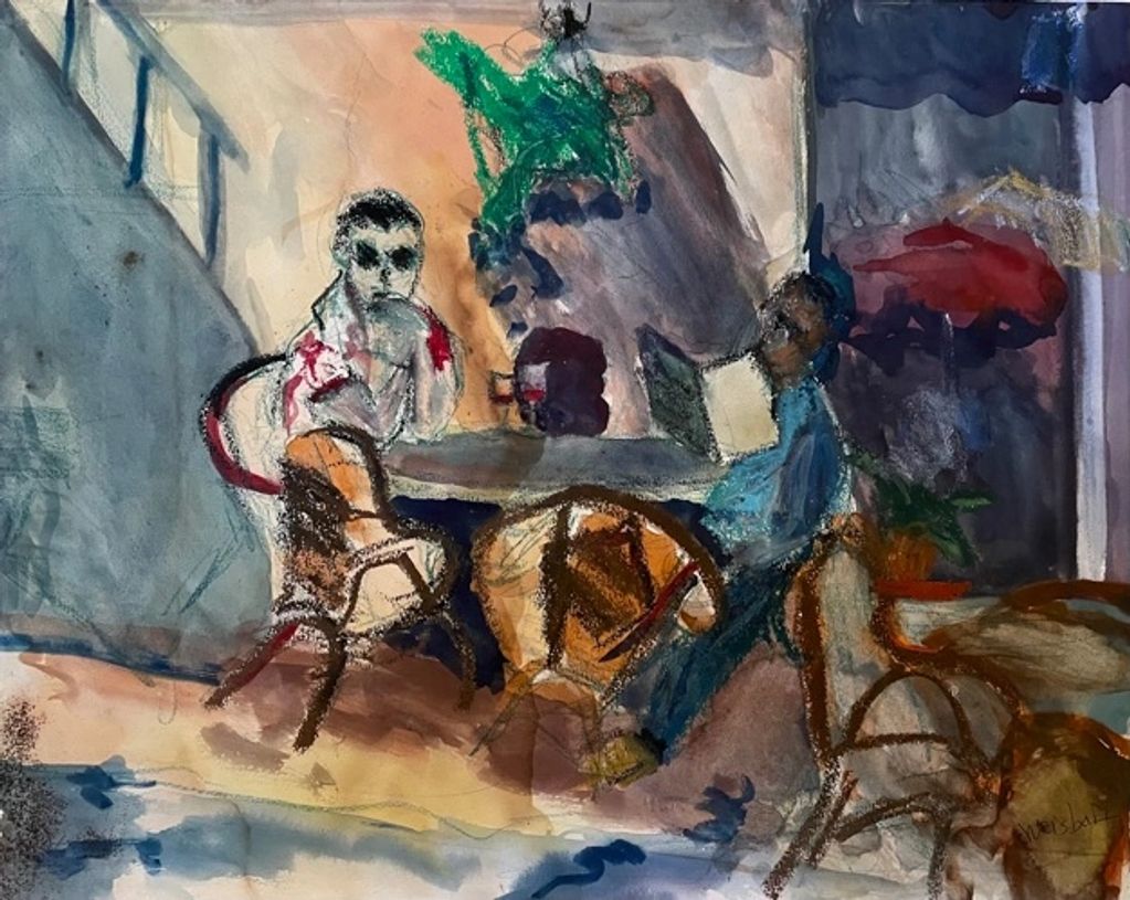 Looking through the window, 12" x 18", mixed media on paper