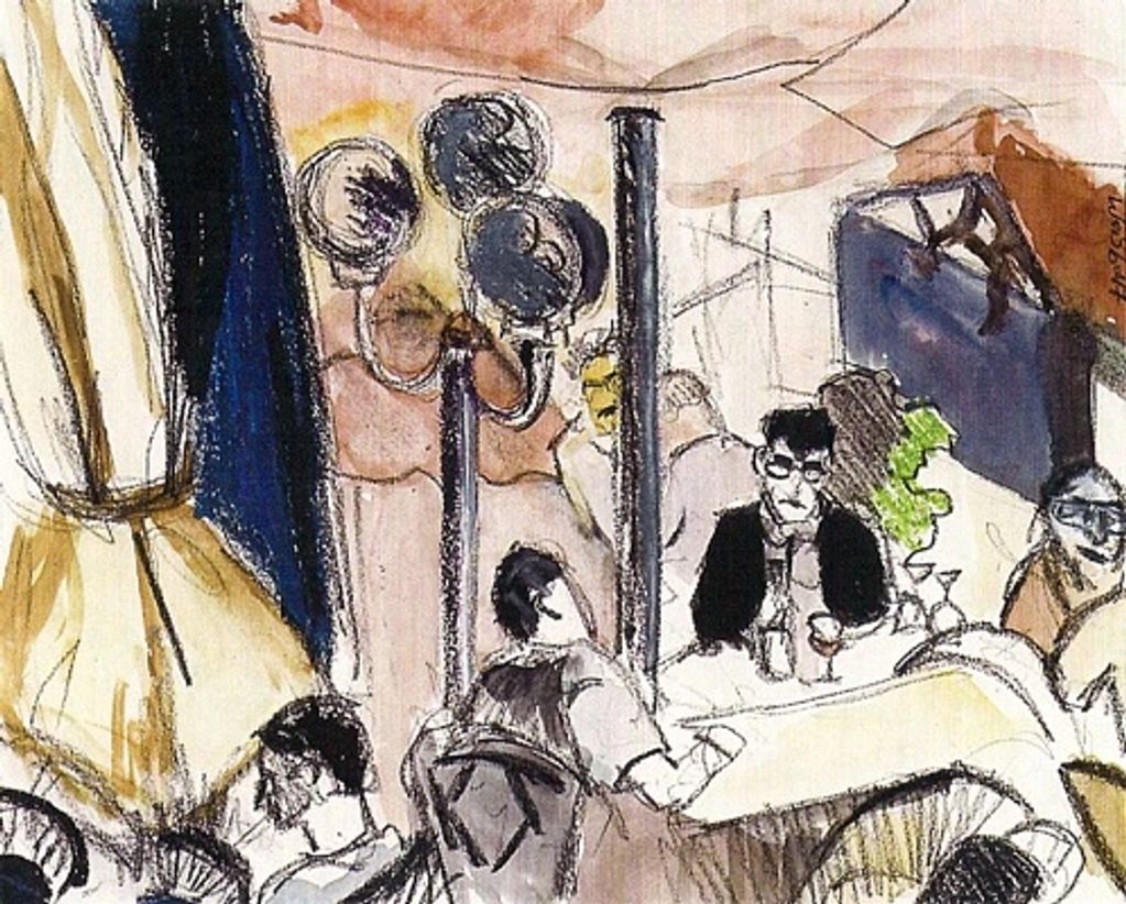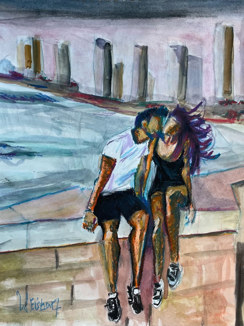 Manhattan, view from Central Park, mixed media on paper, 11" x 15"