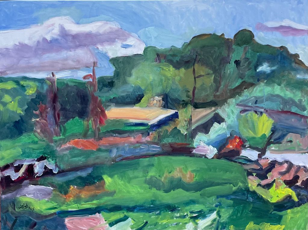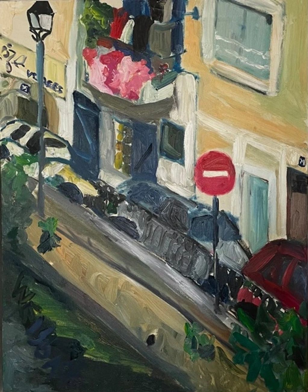 Do Not Enter Sign in France, oil on canvas, dimensions 28" x 22"