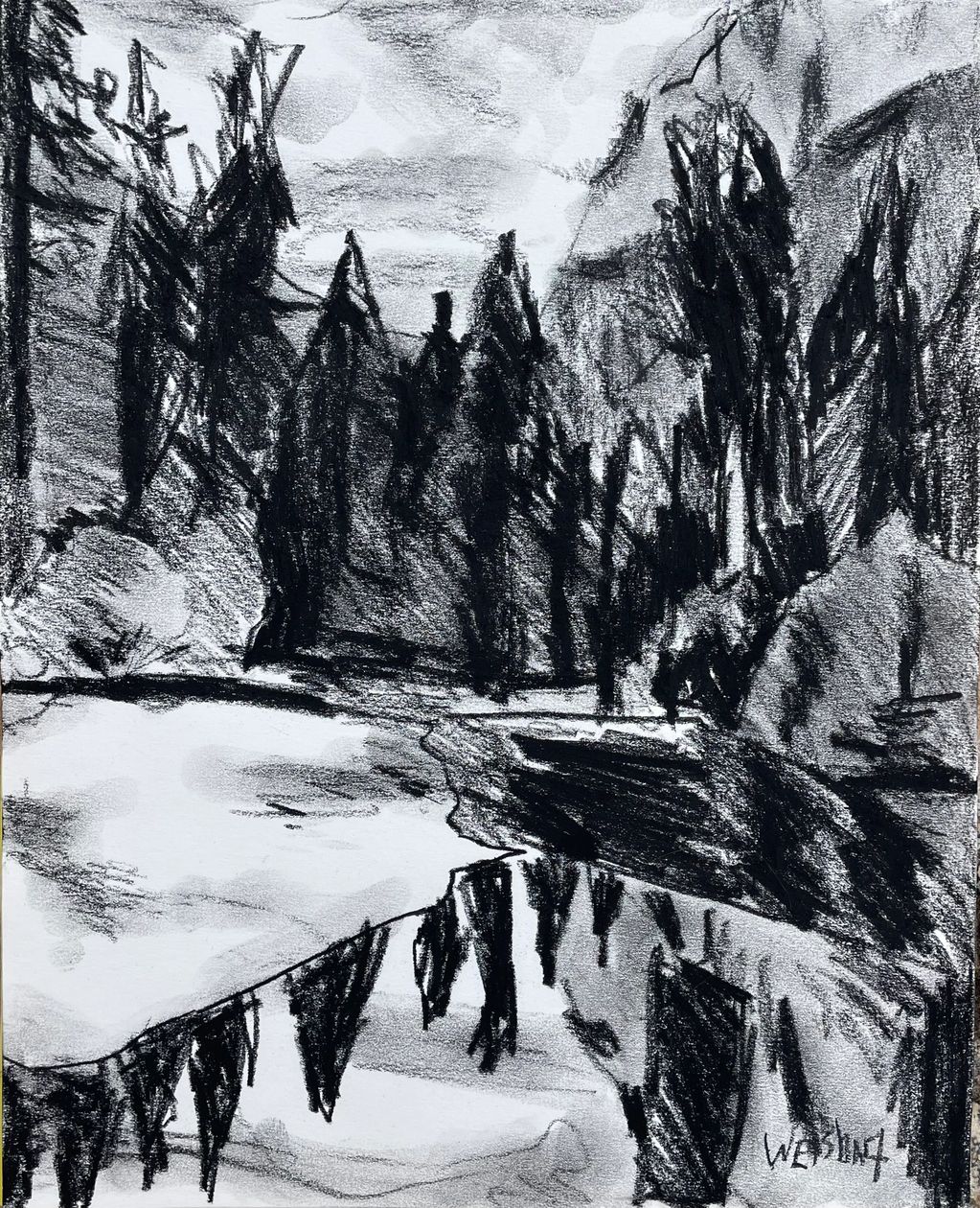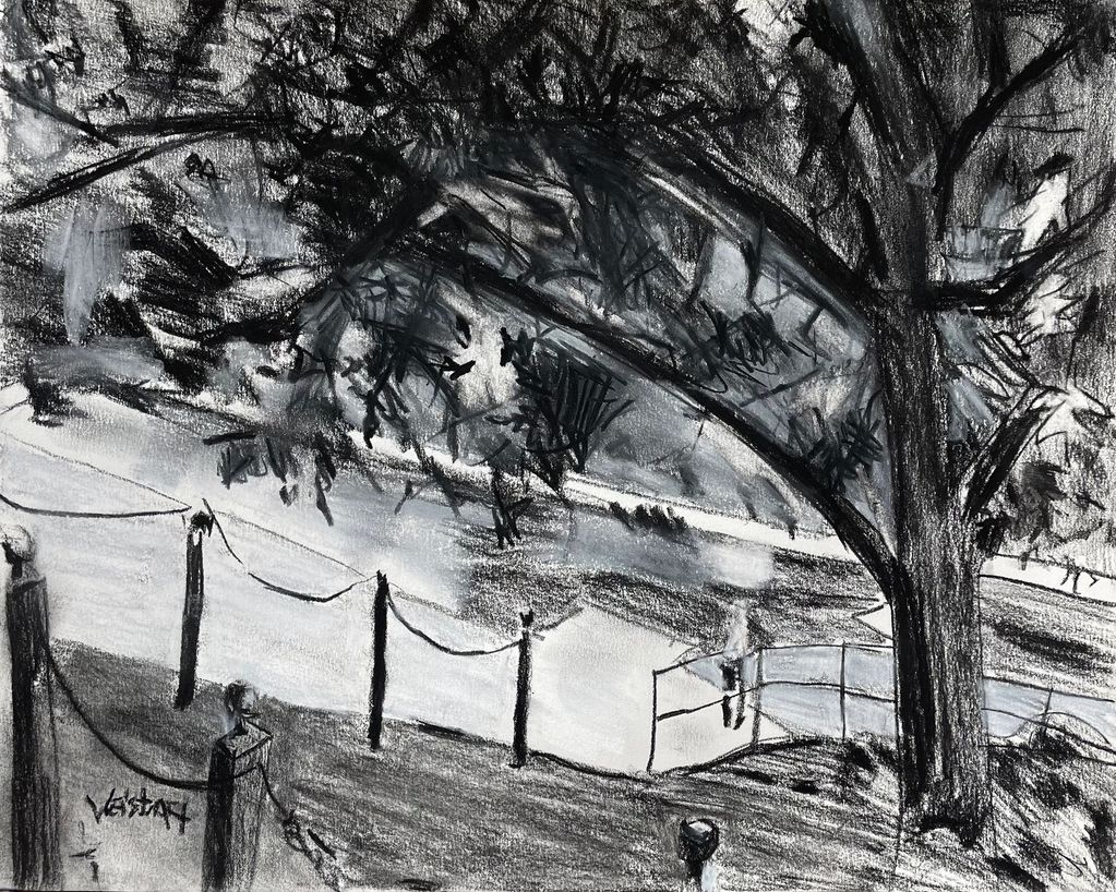 Barton Springs, Austin Texas, 11" x 14, charcoal on paper